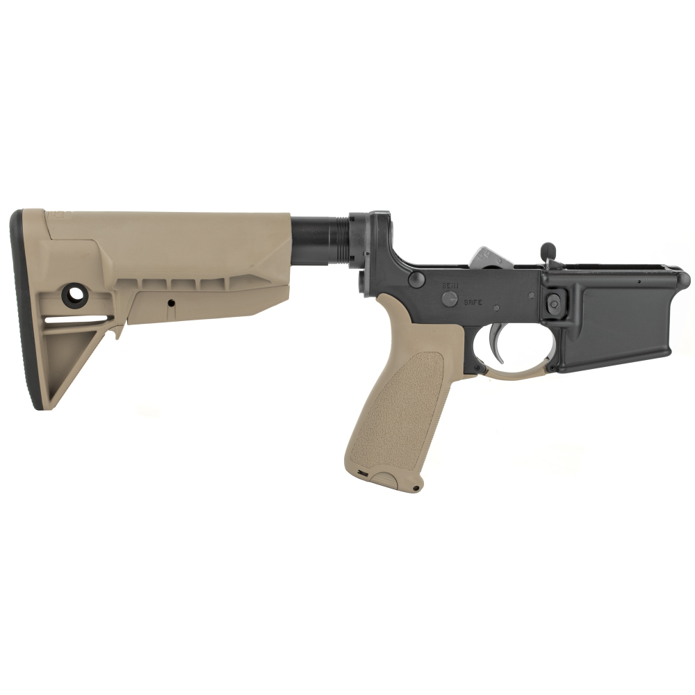 Bravo Company Semi-automatic Complete Lower Receiver, AR, 223 Remington/5.56 NATO, Anodized Finish, Black, Flat Dark Earth BCM Gunfighter Stock, Fire Controls Marked SAFE and SEMI, BCMGUNFIGHTER Enhanced Trigger Guard, BCMGUNFIGHTER QD End Plate, Flat Dark Earth BCMGUNFIGHTER Pistol Grip LRG-STK-MOD-0-SPMD-FDE