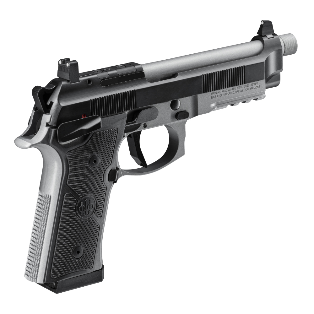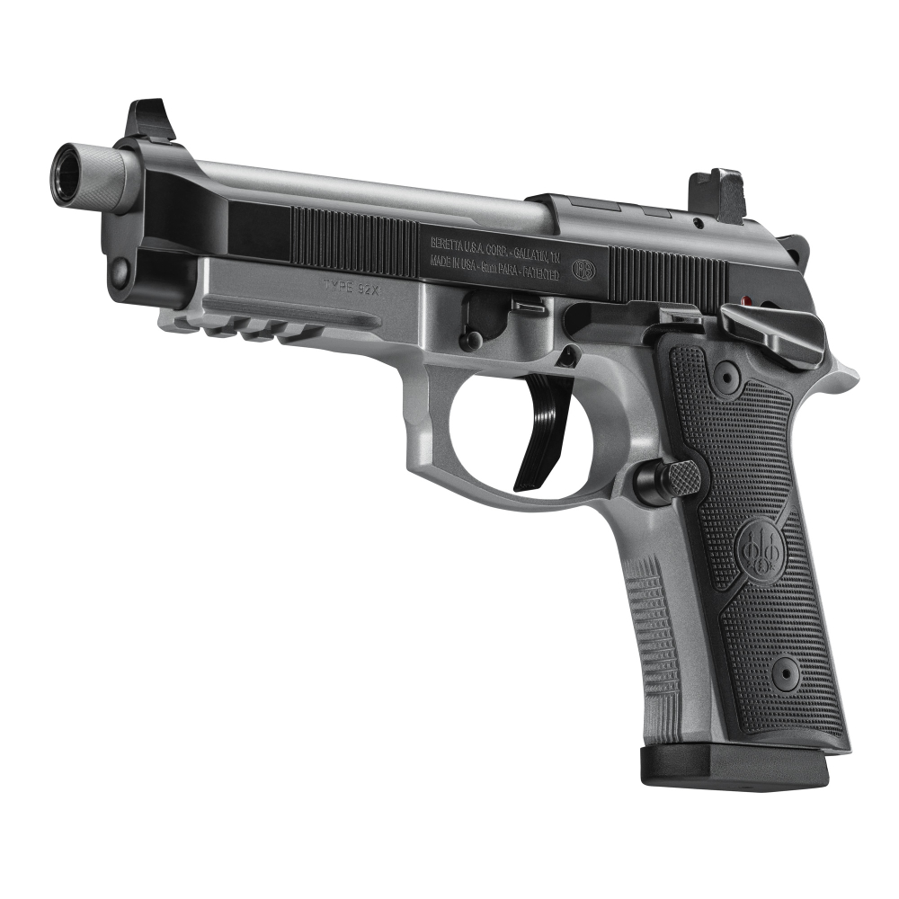 Beretta 92XI SAO Tactical, Semi-automatic, Single Action Only, Full Size Pistol, 9MM, 5.1" Threaded Barrel, 1/2X28, Cerakote Finish, Black Slide and Controls, Silver Frame and Barrel, Optic Ready, Ambidextrous Safety, Suppressor Sights, 15 Rounds, 2 Magazines J92XFMSA15TB