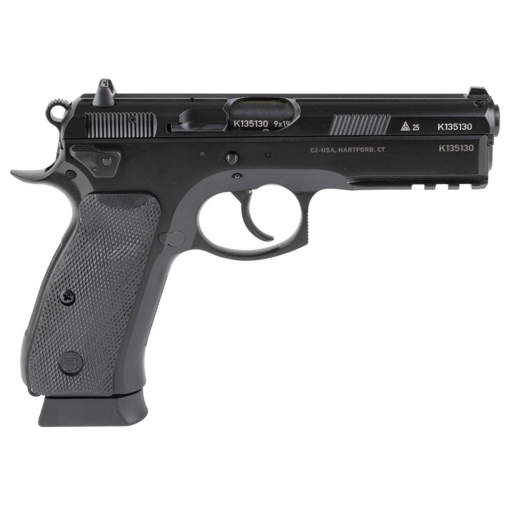 CZ 75 SP-01 Tactical 50th Anniversary Elite, Double Action/Single Action, Semi-automatic, Metal Frame Pistol, Full Size, 9MM, 4.6" Cold Hammer Forged Barrel, Steel, Polycoat Finish, Black, Ambidextrous Decocker, Rubber Grips, Fixed Sights, 19 Rounds, 2 Magazines 91215