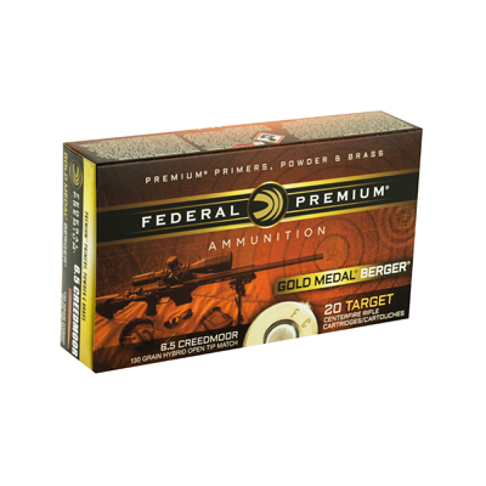 Federal Gold Medal Berger, 6.5 Creedmoor, 130 Grain, Berger Boat Tail Target, 20 Rounds Per Box GM65CRDBH130