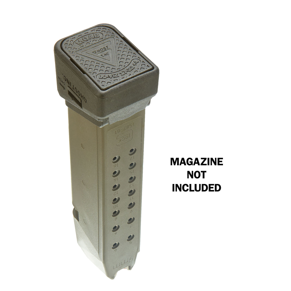 Ghost Inc. Mother of All Baseplates, LoViz, Mag Extension, +4 Rounds of 9MM or 3 Rounds of 40, Matte Finish, Black, Fits Glock Gen 2-5 19X/17/17L/22/24/31/34/35/37/45/47 GHOGL17LOVIZ-4BLK