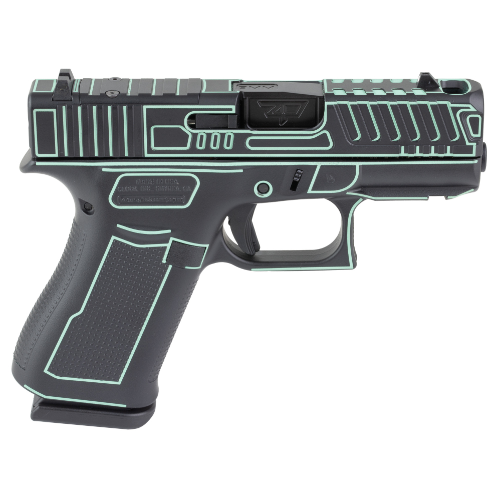 GLOCK 43X, Semi-automatic, Striker Fired, Polymer Frame Pistol, Sub-Compact, 9MM, 3.41" Barrel, Custom Black with Blue Outline Cerakote Finish by Shark Coast Tactical, Fixed Sights, 10 Rounds, 2 Magazines UX4350204FRN