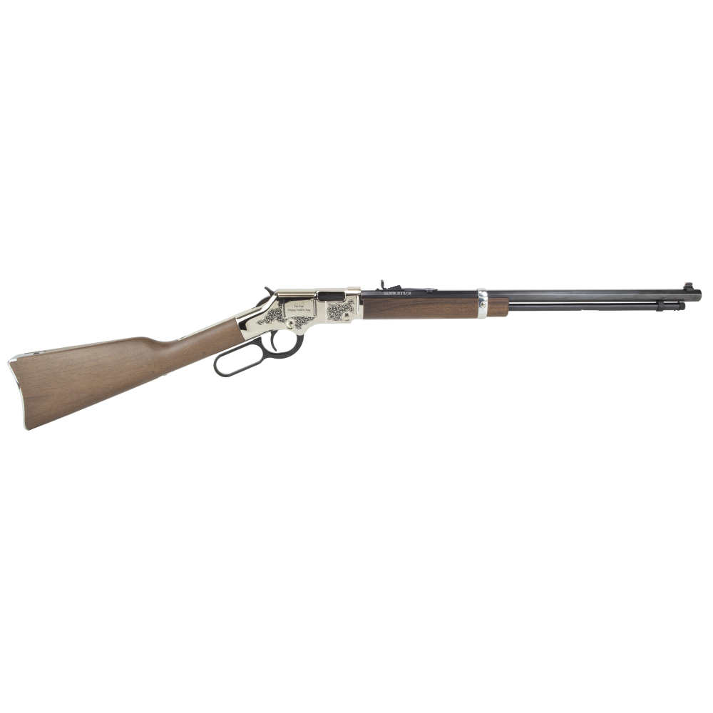 Henry Repeating Arms Silver Boy Father's Day, Lever Action Rifle, 22 LR/22 Short, 20" Octagon Barrel, Nickel Finish, Silver, Engraved Receiver, Adjustable Buckhorn Rear Sight/Bead Front Sight, Walnut Stock, 16 Round and 21 Round H004SFD