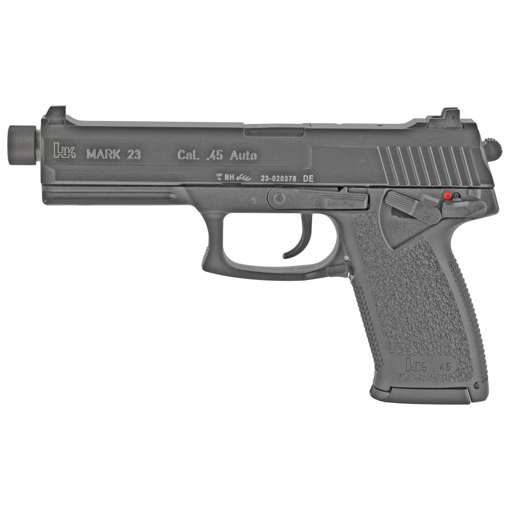 Heckler & Koch Mark 23, V1, Double Action/Single Action, Semi-automatic, Polymer Frame Pistol, Full Size, 45 ACP, 5.87" Threaded Barrel, Black, 3 Dot Sights, Manual Thumb Safety, Frame Mounted Decocker, 10 Rounds, 2 Magazines 81000080