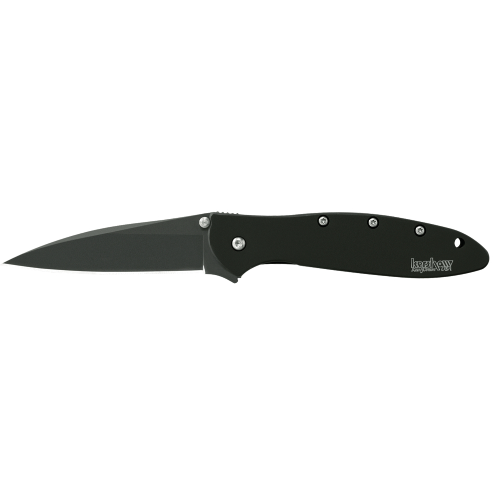 Kershaw Leek, 3" Assisted Folding Knife, Clip Point, Plain Edge, 14C28N/Satin, Black DLC 410 Stainless, Thumb Stud/Pocket Clip 1660CKT
