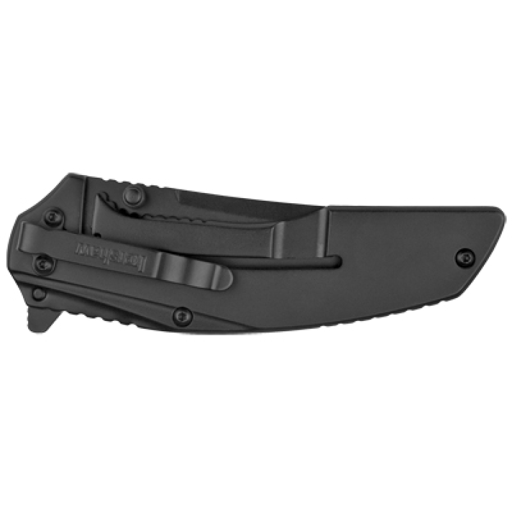Kershaw OURIGHT-BLACK, Folding Knife, Plain Edge, Trailing Point, 3" Blade, Black PVD Finish, Sandvix 8Cr13MoV, Black Stainless Steel Handle with G10 Overlay, SpeedSafe, Flipper, Frame Lock, Tip-Down Carry 8320BLK