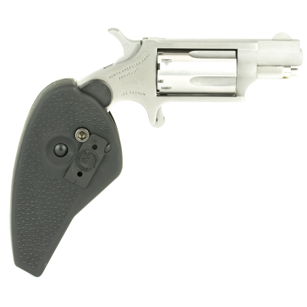 North American Arms Mini Revolver, Single Action Only, Revolver, 22LR/22 WMR, 1.125" Barrel, Stainless Steel, Silver, Holster Grip, Fixed Sights, 5 Rounds NAA-22MSC-HG
