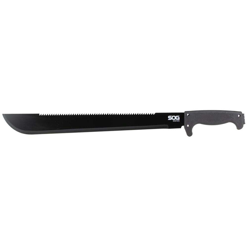 SOG Knives & Tools SOGfari Machete, 18" Straight/Saw Back Edge, Black Kraton Handle, 3Cr13 Steel, Powder Coat Finish, Black, Includes Nylon Sheath SOG-MC02-N
