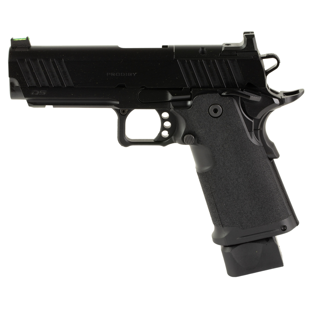 Springfield 1911 DS Prodigy 4.25" AOS Handgun, Semi-Automatic Metal Frame Pistol, 4.25" Forged Stainless Steel Match Grade Barrel, Forged Carbon Steel Frame, Black Cerakote Finish, Polymer Grips, Optics Ready, Fiber Optic Front and Black Serrated Rear Sights, 2 Magazines, (1)-17 Round and (1)-20 Round PH9117AOS