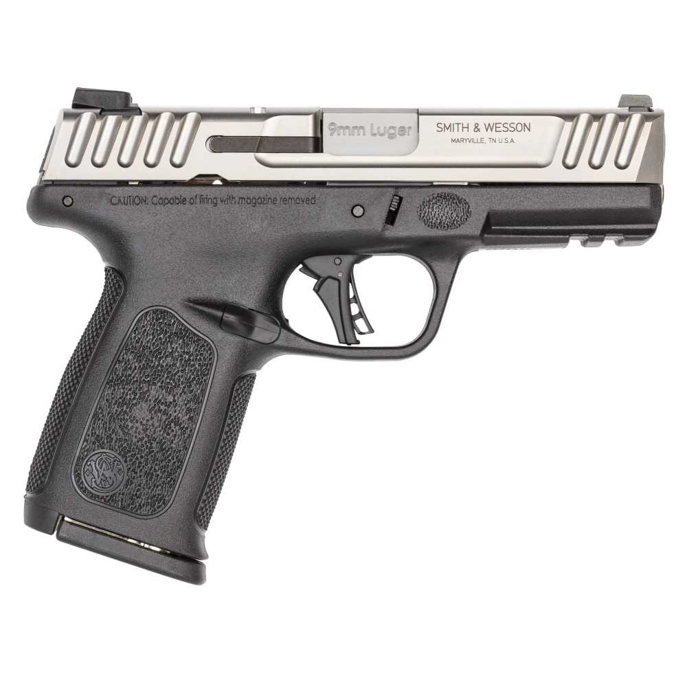 Smith & Wesson SD9 2.0, Striker Fired, Semi-Automatic, Polymer Frame Pistol, Full Size, 9MM, 4" Barrel, Satin Finish, Silver Slide, Black Frame, White Dot Sights, Flat Face Trigger, 16 Rounds, 1 Magazine 13931
