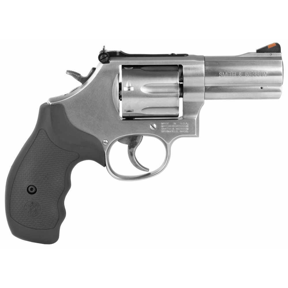 Smith & Wesson Model 686 Plus, Double/Single Action, Metal Frame Revolver, L-Frame, 357 Magnum, 3" Barrel, Stainless Steel, Satin Finish, Silver, Rubber Grips, Adjustable Rear Sight, 7 Rounds 164300