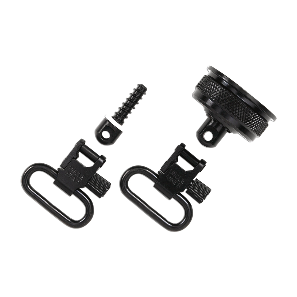 Uncle Mike's QD Mag Cap & Wood Screw Swivel, 1", Fits Remington 870, Black, With External Ratchet 18012