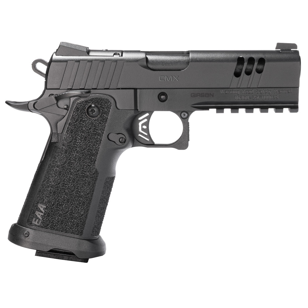 Girsan Witness 2311 CMX, Semi-automatic, Single Action Only, Metal Frame Pistol, Commander Size, 9mm, 4.25" Barrel, Matte Finish, Black, Optics Ready, RMSc Footprint, 3 Dot Sights, Magwell, 17 Rounds, 1 Magazine 395060