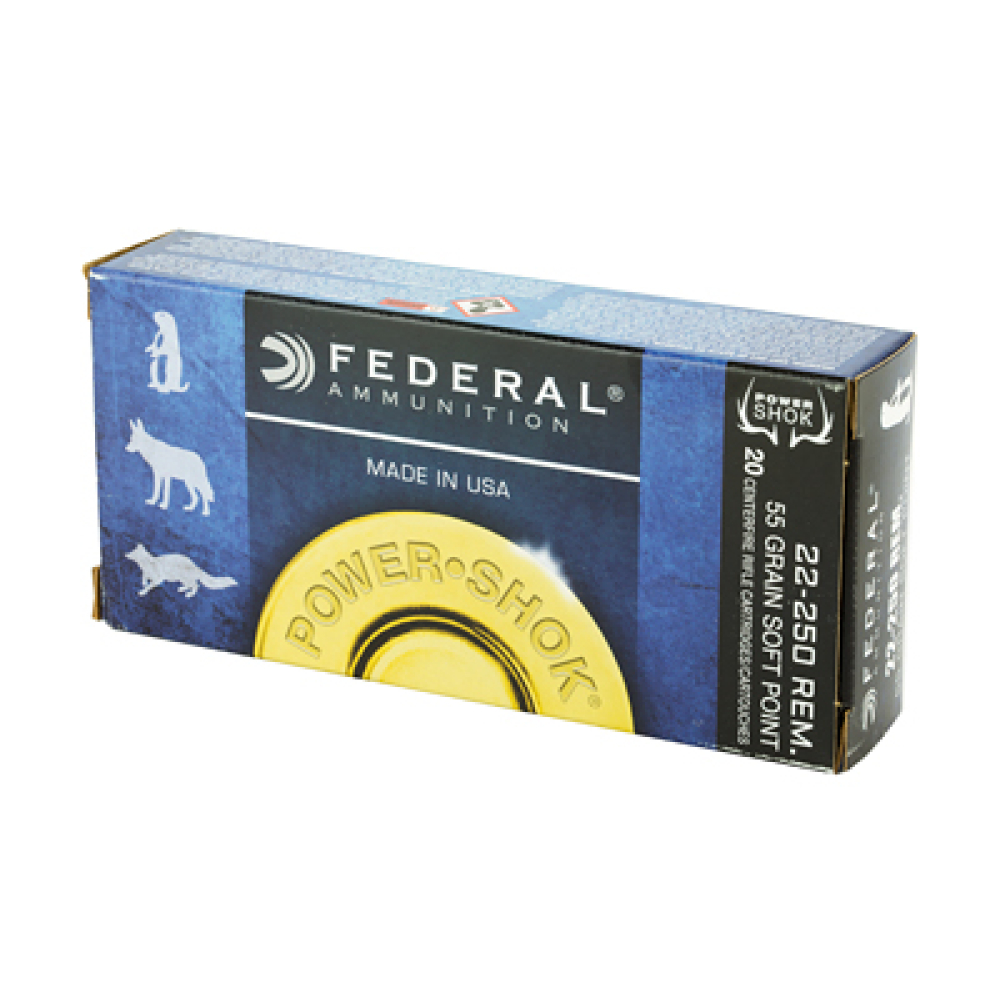Federal PowerShok, 22-250, 55 Grain, Soft Point, 20 Round Box 22250A