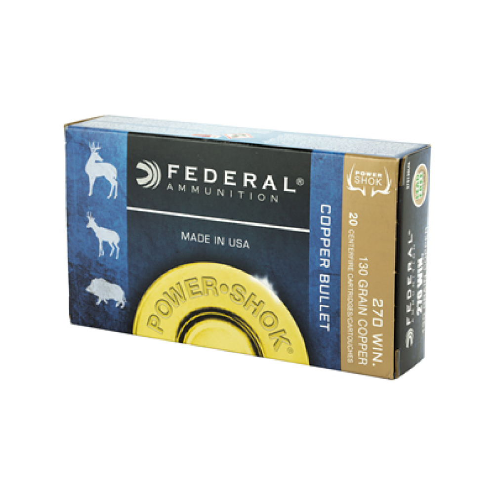 Federal PowerShok, 270 Win, 130 Grain, Copper, Lead Free, 20 Round Box, California Certified Nonlead Ammunition 270130LFA