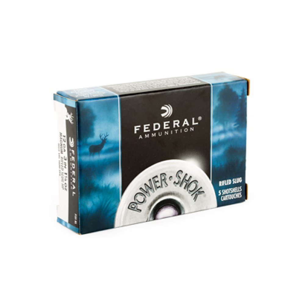 Federal PowerShok, 12 Gauge, 3", Mag Dram, 1.25oz, Rifled Slug, Hollow Point, 5 Round Box F131RS
