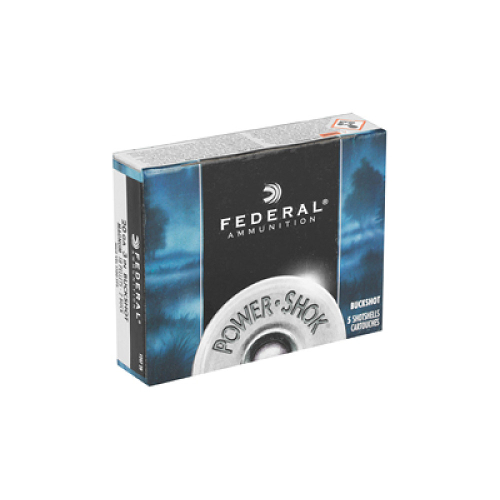 Federal PowerShok, 20 Gauge, 3", #2 Buck, 18 Pellets, 5 Round Box F2072B
