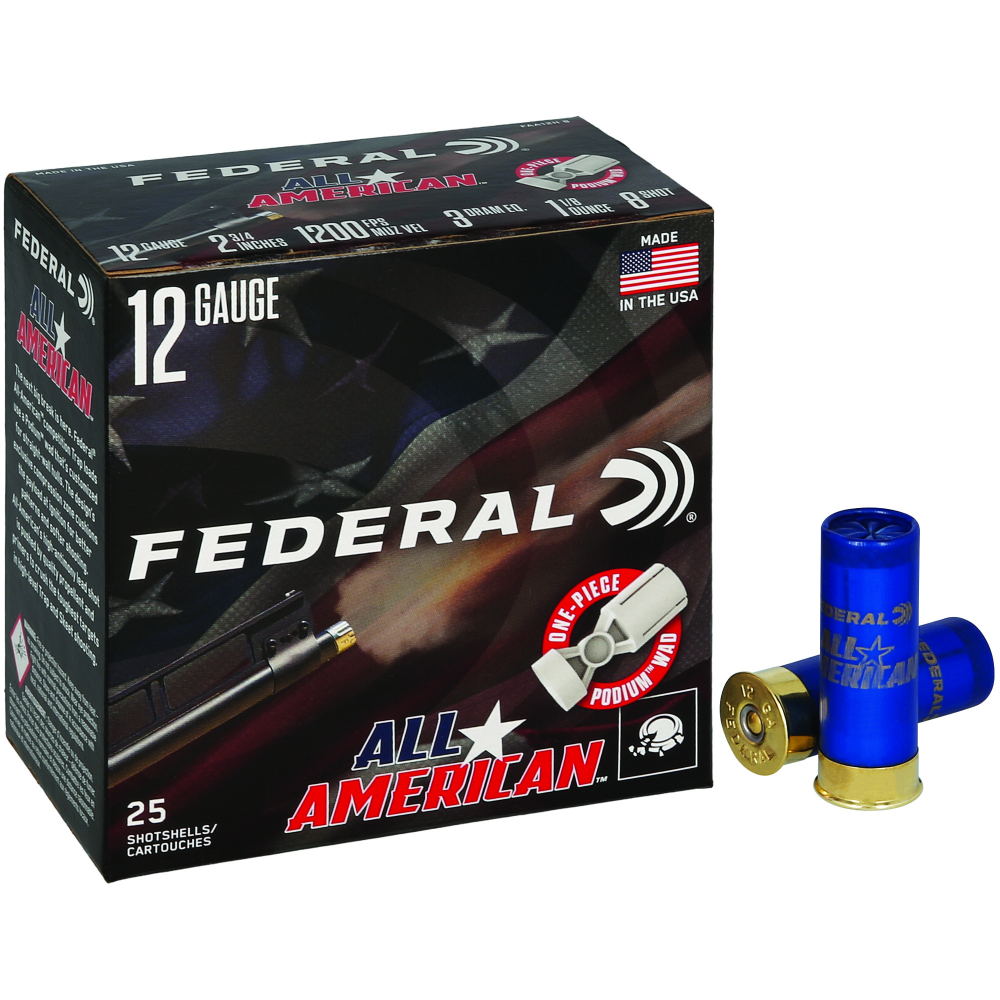 Federal All American, 12 Gauge, 2.75\", #8, 3 Dram, 1 1/8 oz, Lead, 25 Rounds per Box FAA12H 8