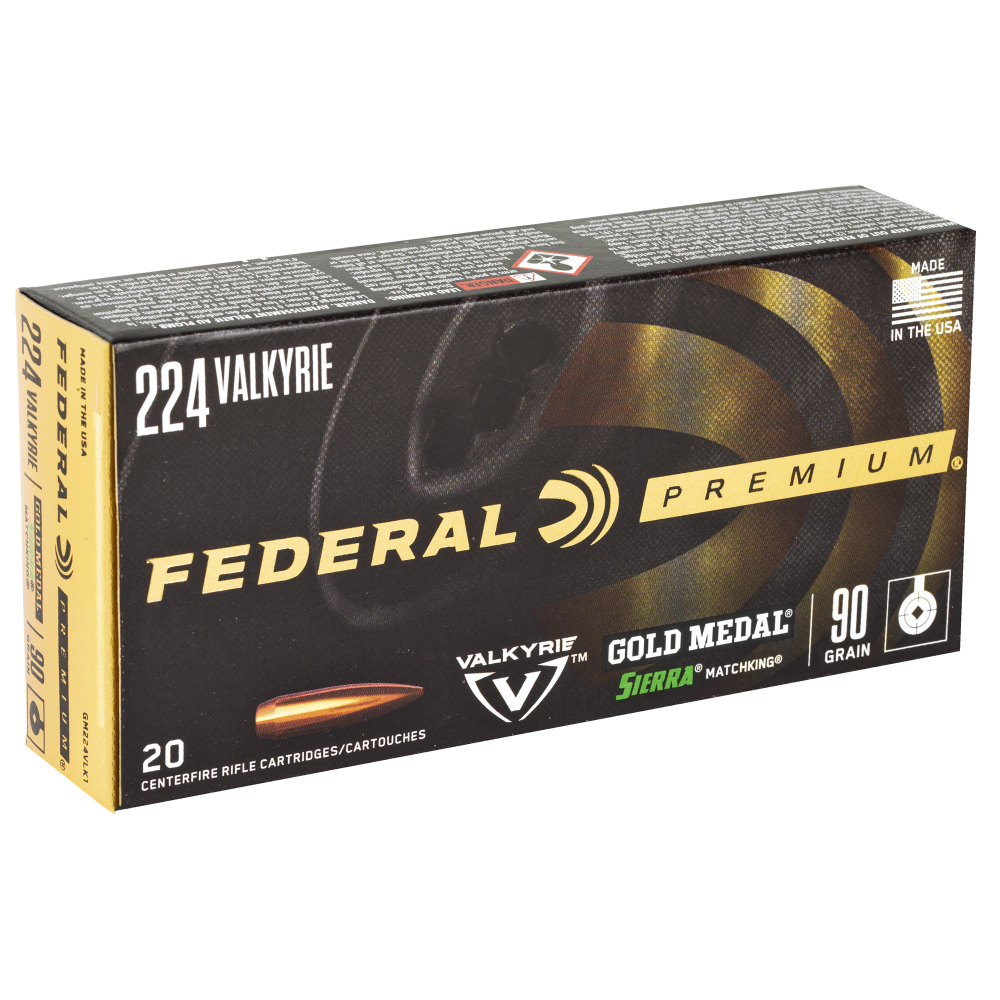 Federal Gold Medal, 224 Valkyrie, 90 Grain, Boat tail Hollow Point, 20 Round Box GM224VLK1