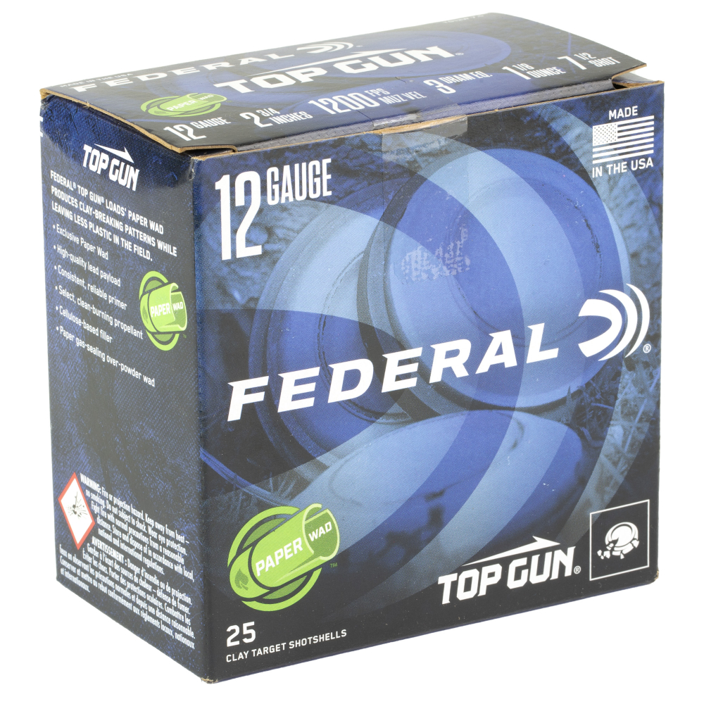 Federal Top Gun, Paper Wad, 12 Gauge 2.75", #7.5, 1 1/8 oz, Lead, 25 Round Box TG12W 7.5