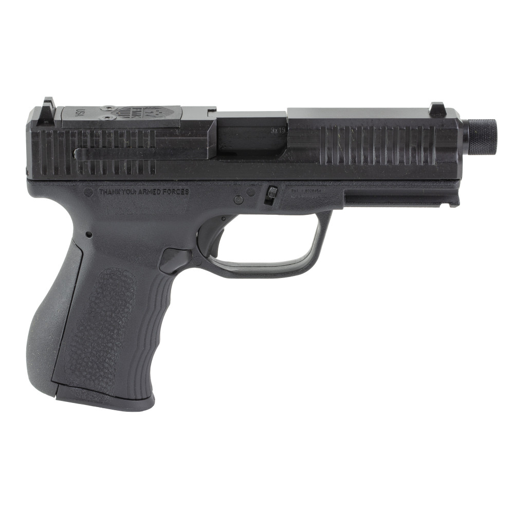FMK Firearms Gen 3, Striker Fired, Semi-automatic, Polymer Frame Pistol, Compact, 9mm, 4.5" Threaded Barrel, Optic Ready Slide, Textured Finish, Black, Fixed Sights, 14 Rounds, 1 Magazine FMKG49TB