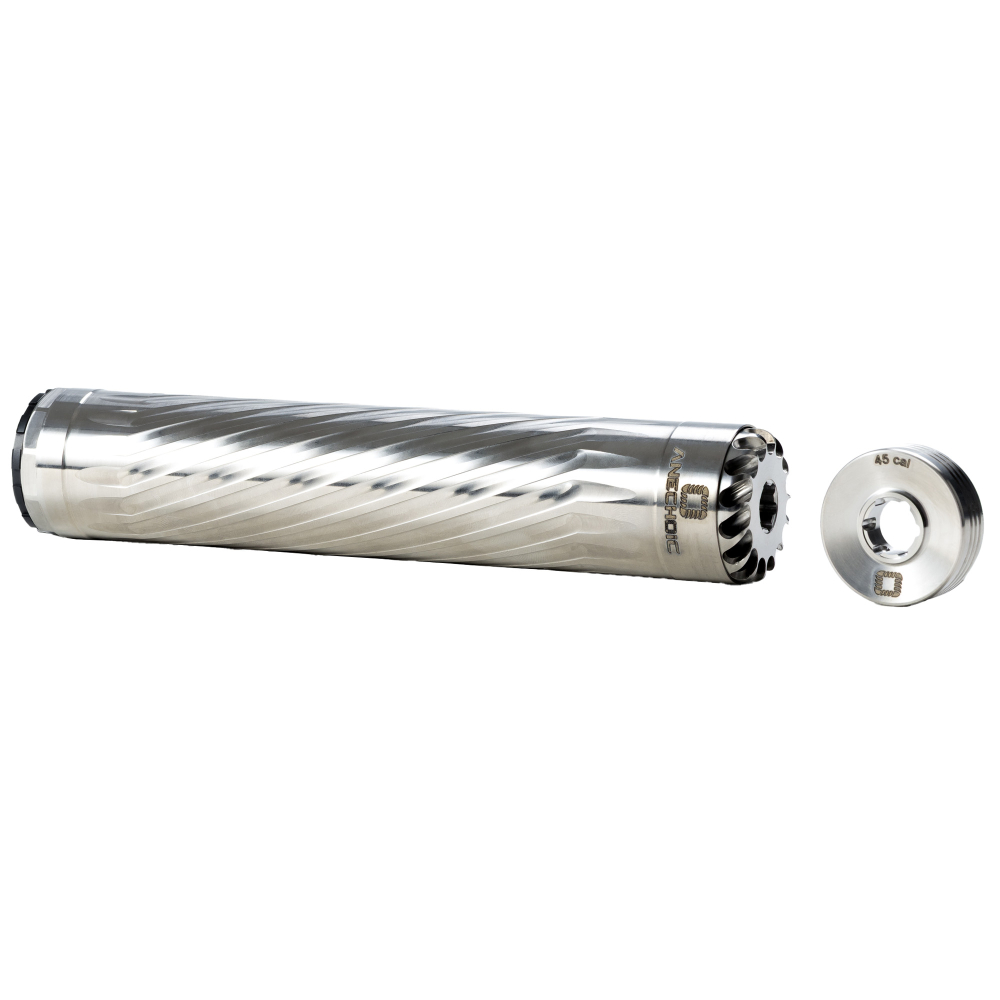 ANECHOIC 45, Suppressor, 458 Winchester Magnum/45 Cal, Titanium Construction, Raw Titanium Finish, Silver, Includes 5/8X24 Direct Thread Mount X-45-RT