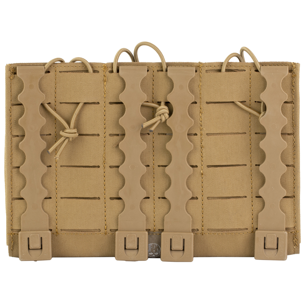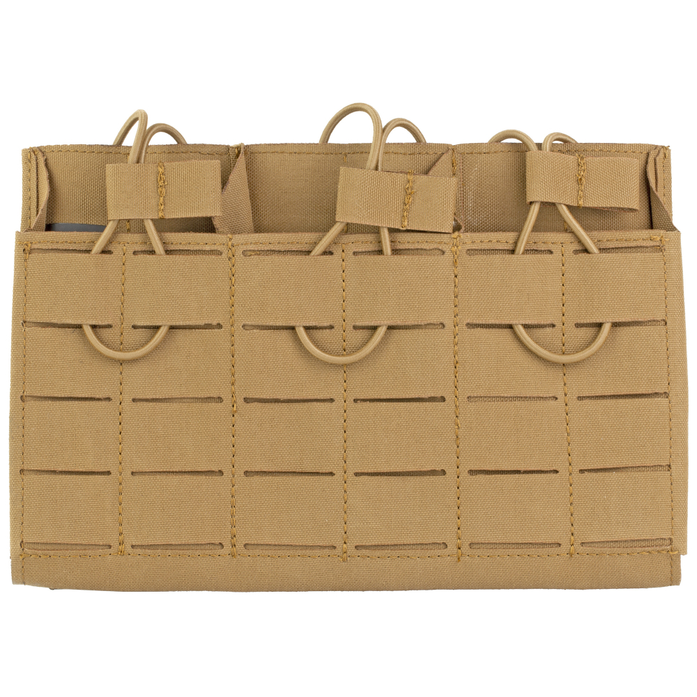 Grey Ghost Gear Compact Triple Mag Panel 5.56, Mag Pouch, Fits AR-15 Magazines, Laminate Nylon, Includes a Bungee Retention Strap to Allow for Silent Removal of your Magazine, Attaches to any MOLLE/PALS Style Webbing with the Included MALICE Clips, Coyote Brown GTG0384-14