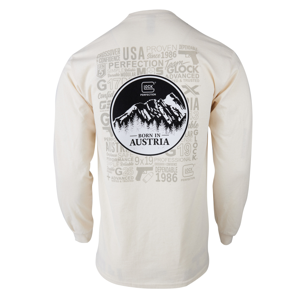 GLOCK OEM Born in Austria, Long Sleeve T-Shirt, X-Large, Tan 96074