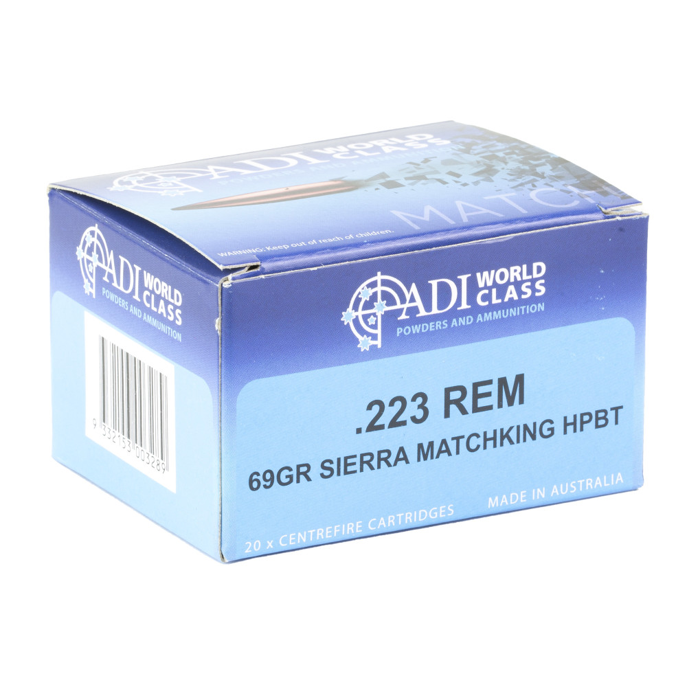 ADI World Class Ammunition Match, Sierra HPBT MatchKing, 223 Remington, 69 Grain, Brass Cased, 20 Round Box ADI9332153003289