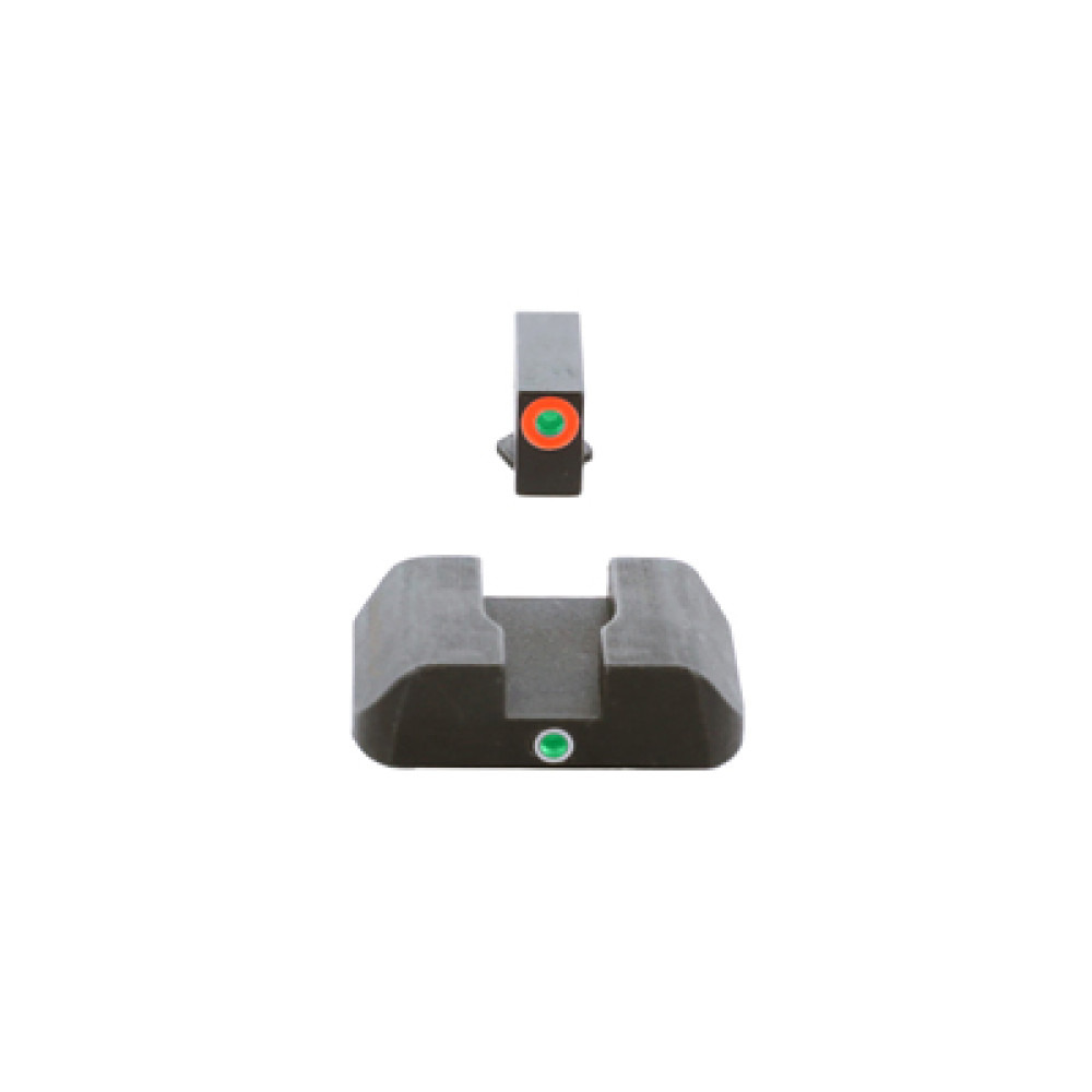 AmeriGlo I-Dot, Single Dot, Night Sight, Fits Glock Gen 5 9/40, Green Front with Orange Outline, Green Rear, Matte Finish, Black GL-5201