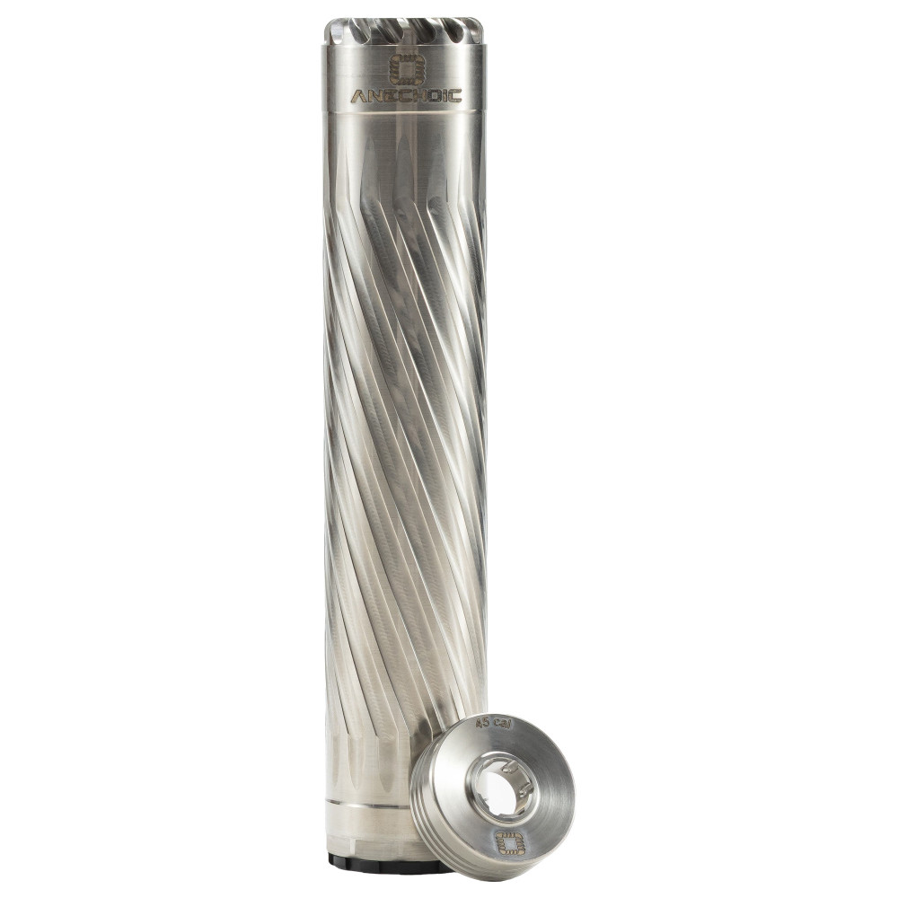 ANECHOIC 45, Suppressor, 458 Winchester Magnum/45 Cal, Titanium Construction, Raw Titanium Finish, Silver, Includes 5/8X24 Direct Thread Mount X-45-RT