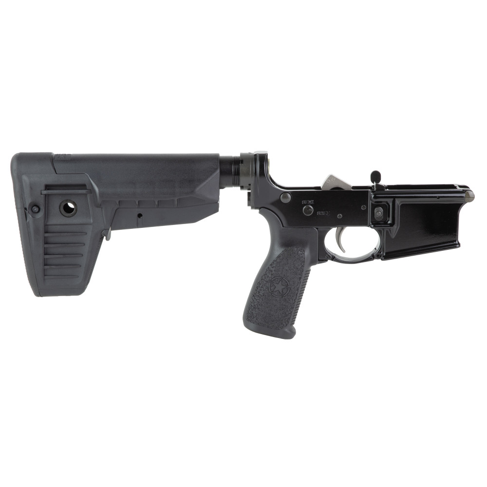 Bravo Company Complete Lower Receiver, AR-15, Multi Caliber, Anodized Finish, Black, BCM SOPMOD, 7075 T6 Aluminum, Factory Cosmetic Blem BCMLRG-STK-MOD-1-SPMD-BLK-COSMO