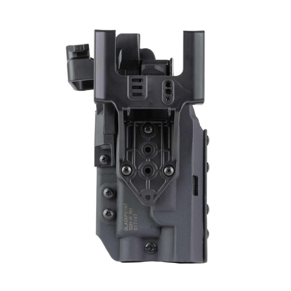 BlackPoint Tactical Slick Duty Light Holster with Hood, Outside Waistband Duty Holster, Fits GLOCK 17 with Light, Right Hand, Kydex Construction, Black, Includes (3)-Shims and Drop Offset Mount 185041