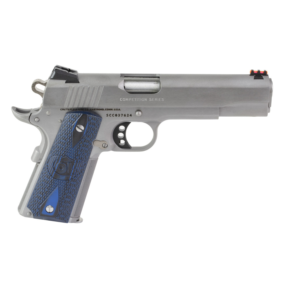 Colt's Manufacturing Competition Pistol 1911, Semi-automatic, Single Action Only, 38 Super, 5" Barrel, Stainless Steel Finish, G10 Grips, 9 Rounds, 1 Magazine O1073CCP
