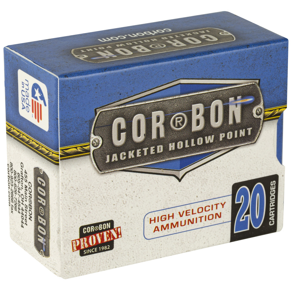 Corbon Ammo Self Defense, 38 Super, 125 Grain, Jacketed Hollow Point, +P, 20 Round Box 38X12520