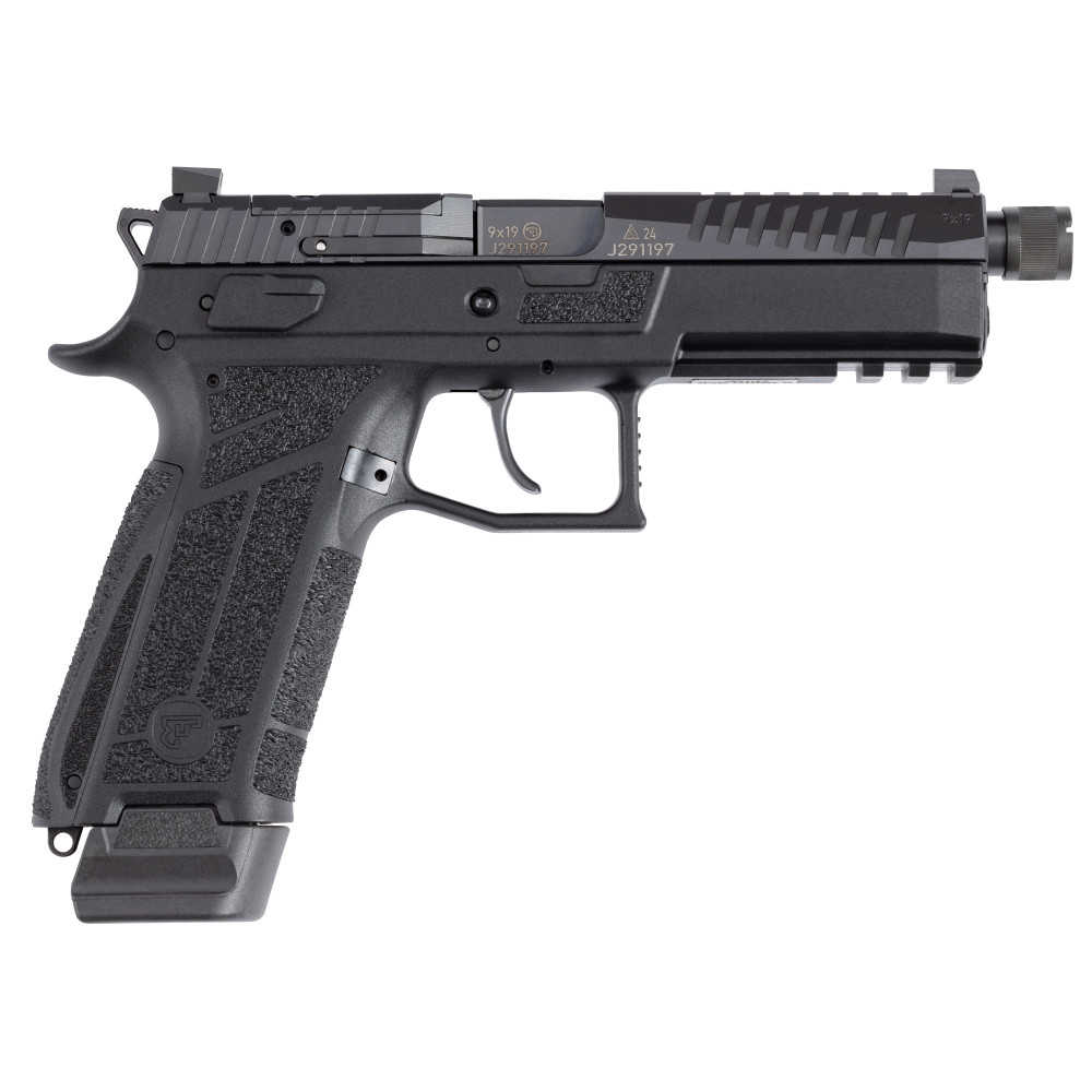 CZ P-09F Nocturne, Semi-automatic, Double Action/Single Action, Polymer Frame Pistol, Compact, 9MM, 5.3" Threaded Barrel, Matte Finish, Black, Optics Ready, Contrast Luminescent 3 Dot Sights, Manual Safety with Interchangeable Decocker, 21 Rounds, 2 Magazines 91671