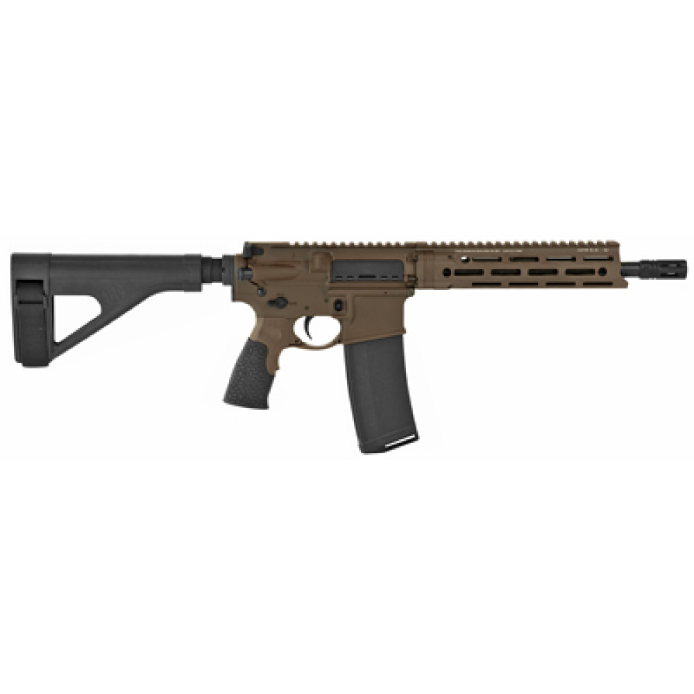 The DDM4 V7P AR15-style pistol features a 10.3-inch barrel and the MFR 9.0 M-LOK rail for quick handling, accuracy, and reliability, while also offering compatibility with a wide range of muzzle devices and sound suppressors. It includes M-LOK attachment technology and is equipped with the SB Tactical SBA3 Pistol Stabilizing Brace, which has 5 positions of adjustability and an integrated, ambidextrous QD swivel attachment point.