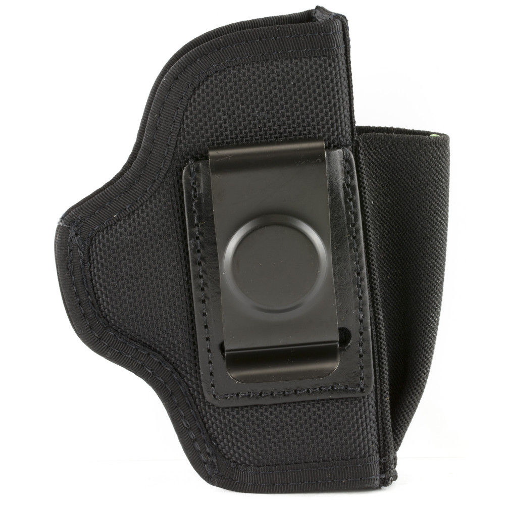 The N87 is made of premium padded ballistic nylon. The 1 3/4" sturdy, powder coated black spring clip keeps this beauty securely anchored to your belt. A spare magazine pouch is standard for the auto loader models, and they are ambidextrous. The clip may be removed and inserted on opposite side for left hand carry. Available in black. Optional thumb break is available separately, style N99.