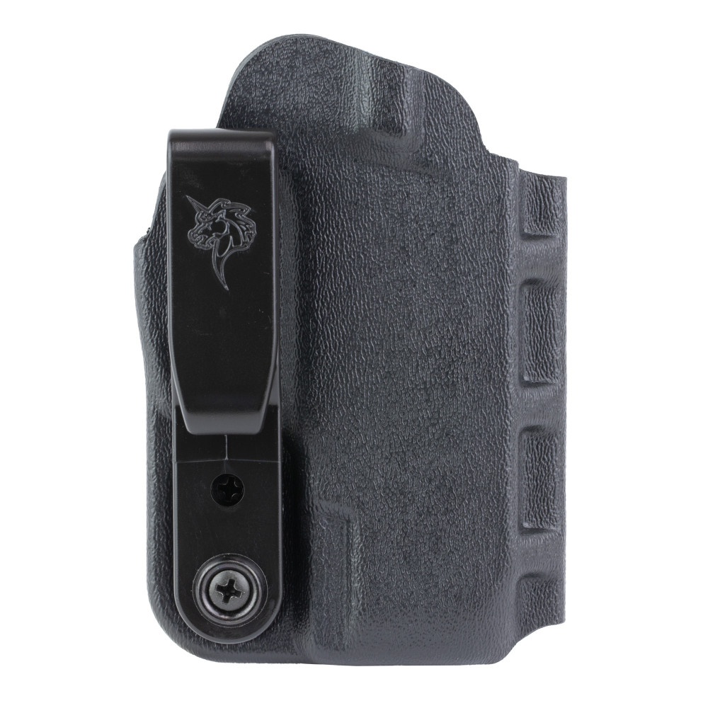 The Slim-Tuk is a minimalist slim fitting, ambidextrous IWB holster fashioned from Kydex sheet. One of the most unique features about this IWB holster is that it uses DeSantis's tuck-able 360 C-Clip, which affords the wearer unlimited mounting options. The hardware can easily be reversed to change from right to left hand. The Slim-Tuk is precision molded and has adjustable tension and a rugged 1.75" nylon clip.