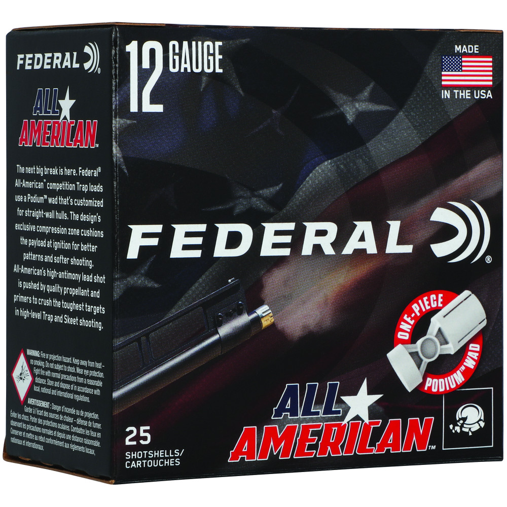 Federal All American, 12 Gauge, 2.75", #8, 2.75 Dram, 1 1/8 oz, Lead, 25 Rounds per Box FAA12L 8