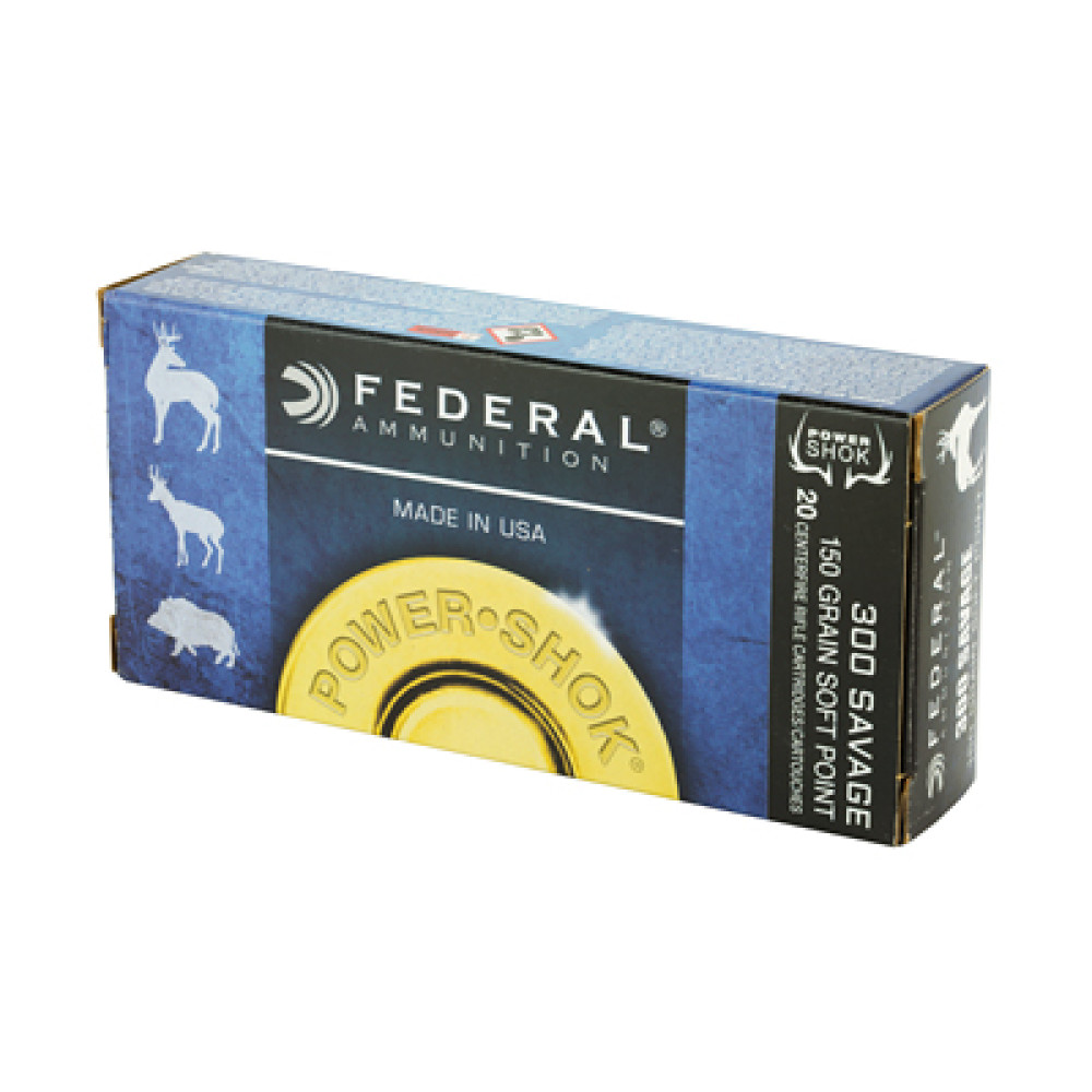 Federal PowerShok, 300 Savage, 150 Grain, Soft Point, 20 Round Box 300A