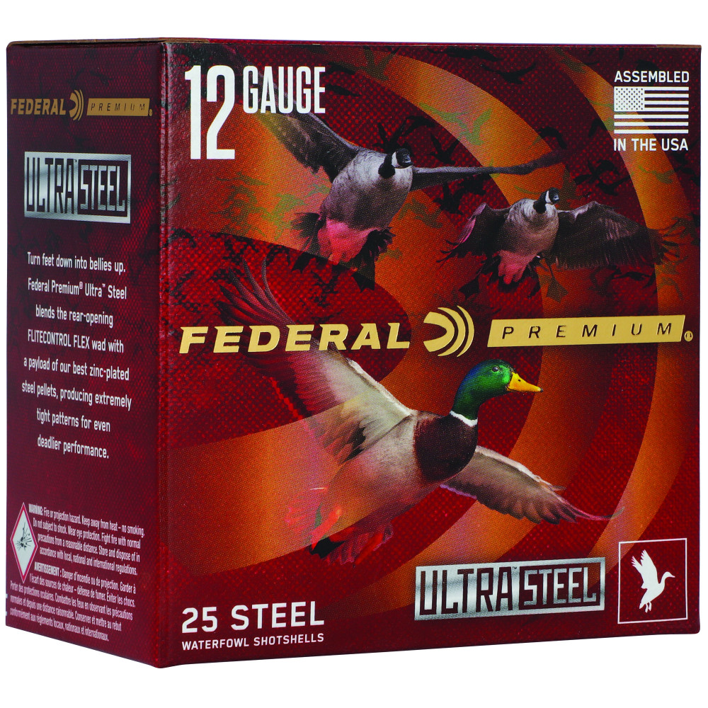 Waterfowlers live for those moments when the birds do it right. And in those moments, they want a shell that does the rest. Federal Premium Ultra Steel blends the rear-opening FLITECONTROL FLEX wad with a payload of our best zinc-plated steel, producing extremely tight patterns for even deadlier performance. Available in a variety of standard payloads, as well as loads that feature two sizes of shot: smaller pellets that create full patterns and larger ones that deliver better lethality.