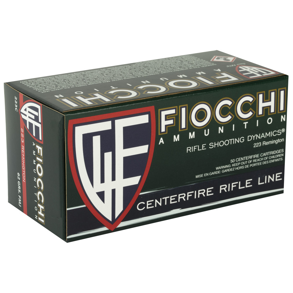 Fiocchi Ammunition Rifle, 223 Remington, 62 Grain, Full Metal Jacket Boat Tail, 50 Round Box 223C