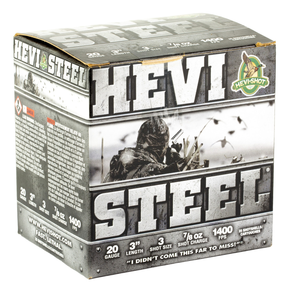 HEVI-Shot HEVI-Shot, HEVI-Steel, 20 Gauge 3", Max Dram, 7/8 oz, #3 Shot Size, 25Rd Boxy HS62003
