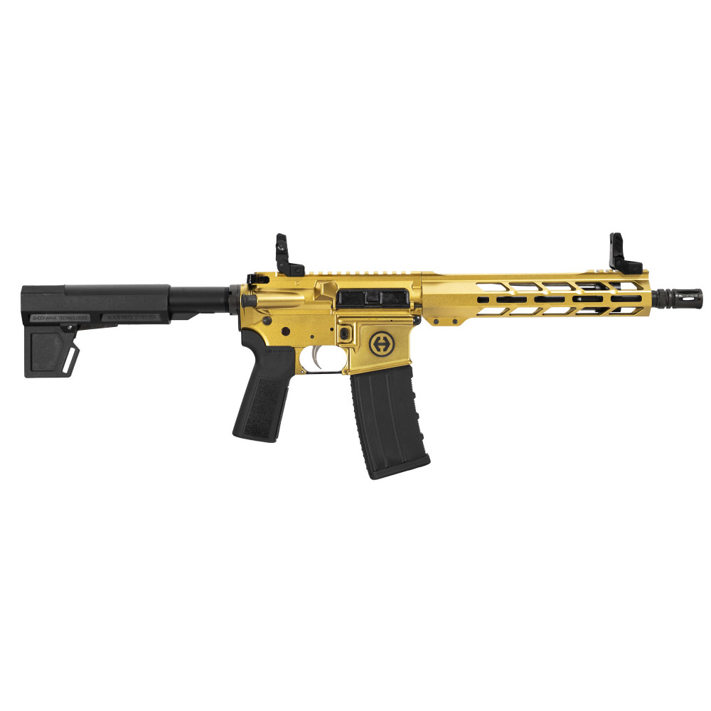 Hi-Point Firearms HP-15, Semi-automatic Pistol, 223 Remington/5.56 NATO, 10.5" Barrel, A2 Birdcage Flash Hider, Matte Finish, Gold, Blade Style Brace, 9.5" Free Float M-LOK Hand Guard, 30 Rounds, 1 Magazine HP15P-556 GOLD