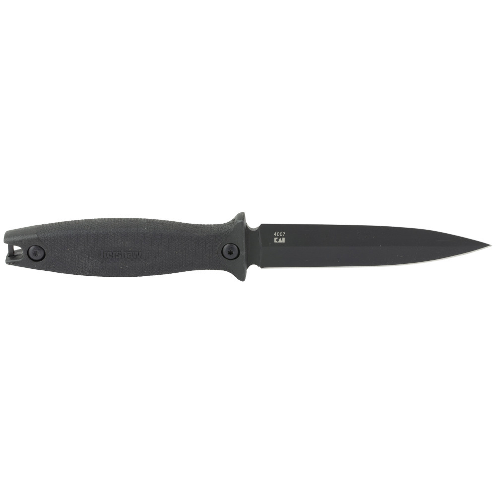Kershaw Secret Agent, 4.4" Fixed Blade Knife, Spear Point, Plain Edge, Black-Oxide Finish, Rubberized Co-Molded Handle, Includes Molded Dual-Carry Sheath with Clip 4007