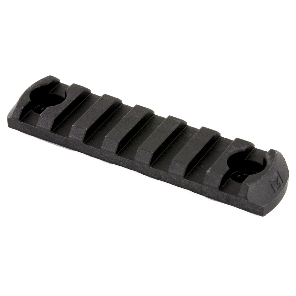 Designed for use with all M-LOK compatible Hand Guards and Forends, M-LOK Polymer Rail Sections provide a cost effective method of attaching various 1913 Picatinny spec rail-mounted accessories such as lights, vertical grips, etc. Injection molded from a proprietary reinforced composite for enhanced strength and durability while remaining lightweight, Rail Sections also feature beveled ends to reduce snagging and eliminate sharp corners and edges. All hardware necessary for attachment directly to M-LOK Slots on either aluminum or polymer hand guards and forends is included. 7 Slots, max overall length of 3.3 in. Made in U.S.A.