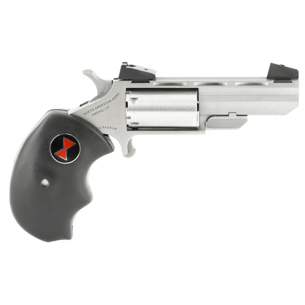 North American Arms Black Widow, Single Action Only, Revolver, 22 WMR, 2" Barrel, Matte Finish, Stainless Steel, Silver, Rubber Grips, Adjustable Sights, 5 Rounds NAA-BWMA