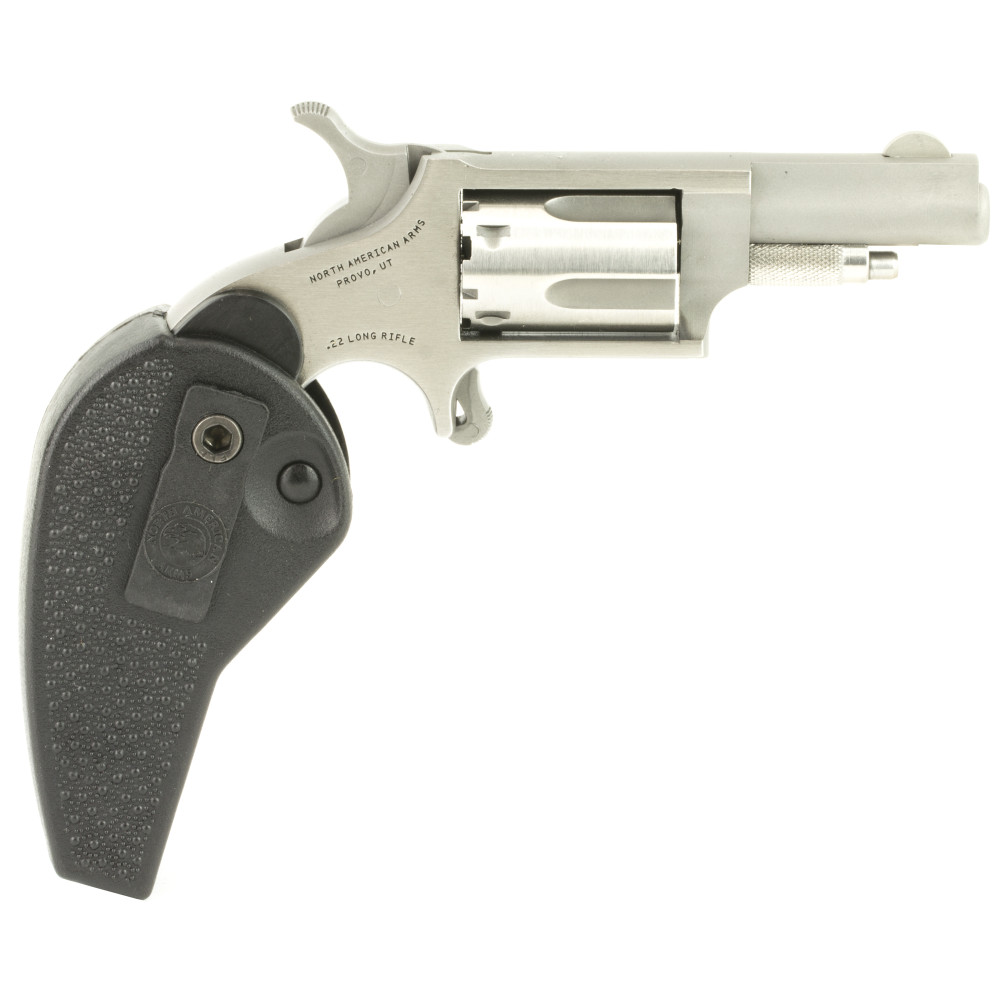 North American Arms Mini Revolver, Single Action Only, Revolver, 22LR, 1.625" Barrel, Matte Finish, Stainless Steel, Silver, Holster Grip, Fixed Sights, 5 Rounds NAA-22LLR-HG