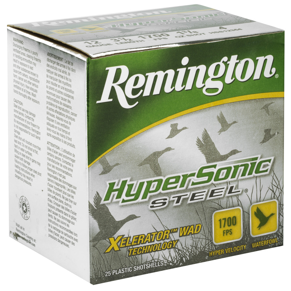 Remington HyperSonic, 12 Gauge, 3.5", 1.375 oz., Steel, #4, Lead Free, 25 Round Box, California Certified Nonlead Ammunition 26799